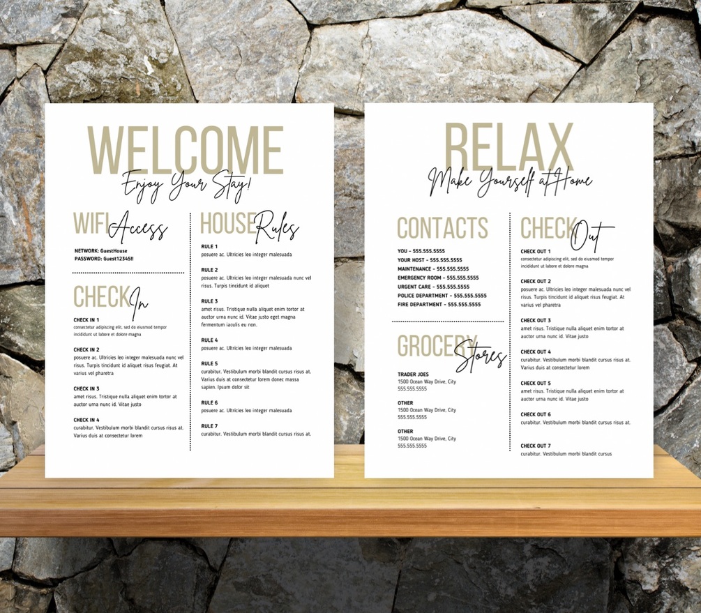 • 2 PAGE 8.5x11 Editable Airbnb Sign Set Canva Template (downloaded as a printable PDF when you are done editing on Canva)